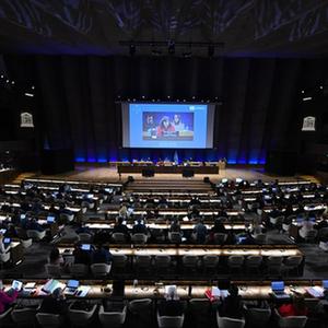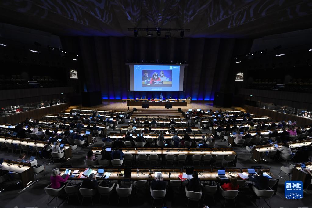 這是5月22日在法國巴黎的聯(lián)合國教科文組織總部拍攝的聯(lián)合國教科文組織執行局第216屆會(huì )議現場(chǎng)。