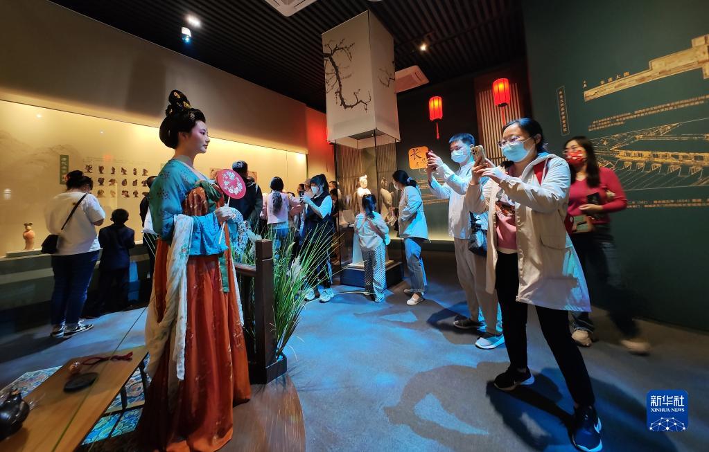5月22日晚,游客在西安博物院《長(cháng)安有故里——絲路少年大唐行》展覽上參觀(guān)。