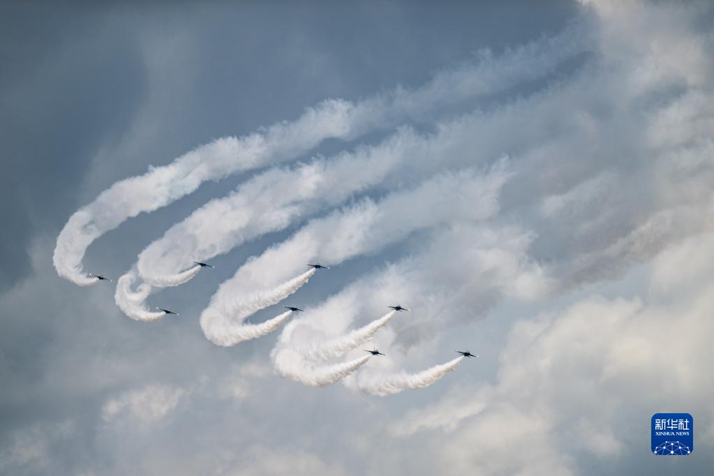 5月23日,在馬來(lái)西亞蘭卡威舉行的第16屆蘭卡威國際海事和航空展上,飛行表演隊進(jìn)行特技飛行表演。