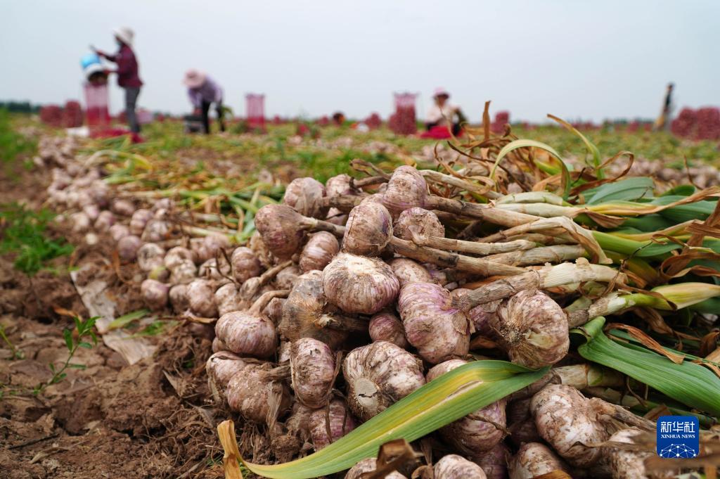 近日,山東省巨野縣農戶(hù)種植的大蒜進(jìn)入收獲期。近年來(lái),巨野縣建立高標準大蒜種植基地35萬(wàn)畝,建設大蒜倉儲冷庫500余座,大蒜已成為助力當地農民致富的主要特色產(chǎn)業(yè)。