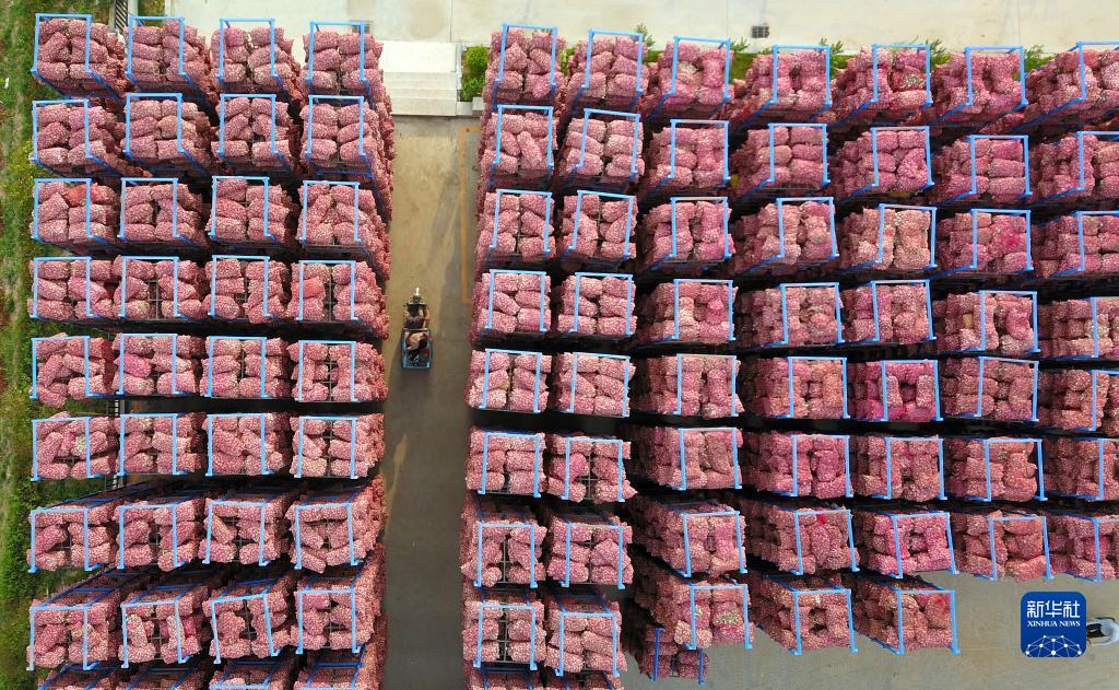 近日,山東省巨野縣農戶(hù)種植的大蒜進(jìn)入收獲期。近年來(lái),巨野縣建立高標準大蒜種植基地35萬(wàn)畝,建設大蒜倉儲冷庫500余座,大蒜已成為助力當地農民致富的主要特色產(chǎn)業(yè)。
