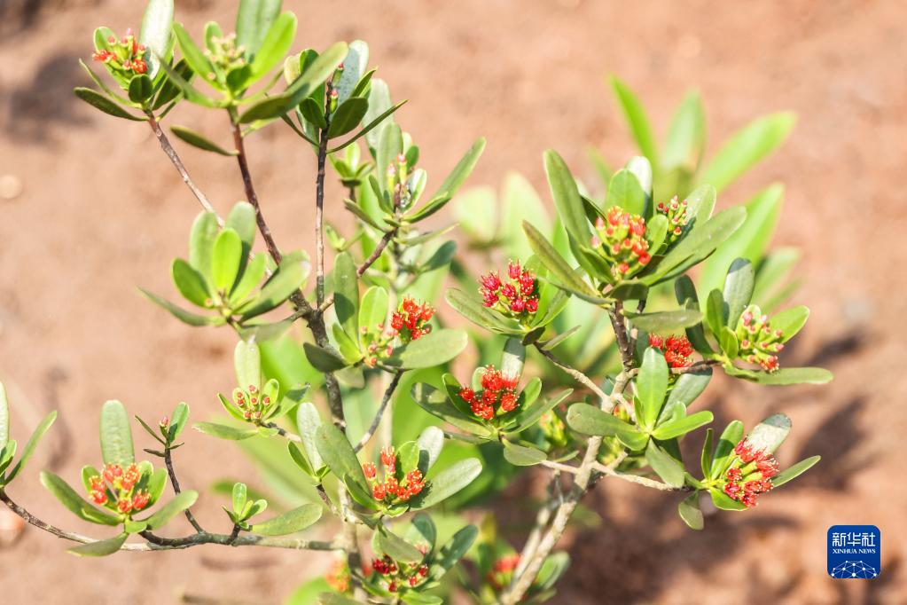 近日,在海南東寨港國家級自然保護區里的瀕危紅樹(shù)植物紅欖李迎來(lái)花期。據悉,紅欖李是珍稀瀕危紅樹(shù)植物、國家一級保護植物,被譽(yù)為紅樹(shù)林中的“大熊貓”。國內一度僅存14株。2014年,海南東寨港國家級自然保護區管理局成功培育出紅欖李幼苗,并建立紅欖李野外種植基地。如今這里已有超過(guò)20畝、約2300株的紅欖李。