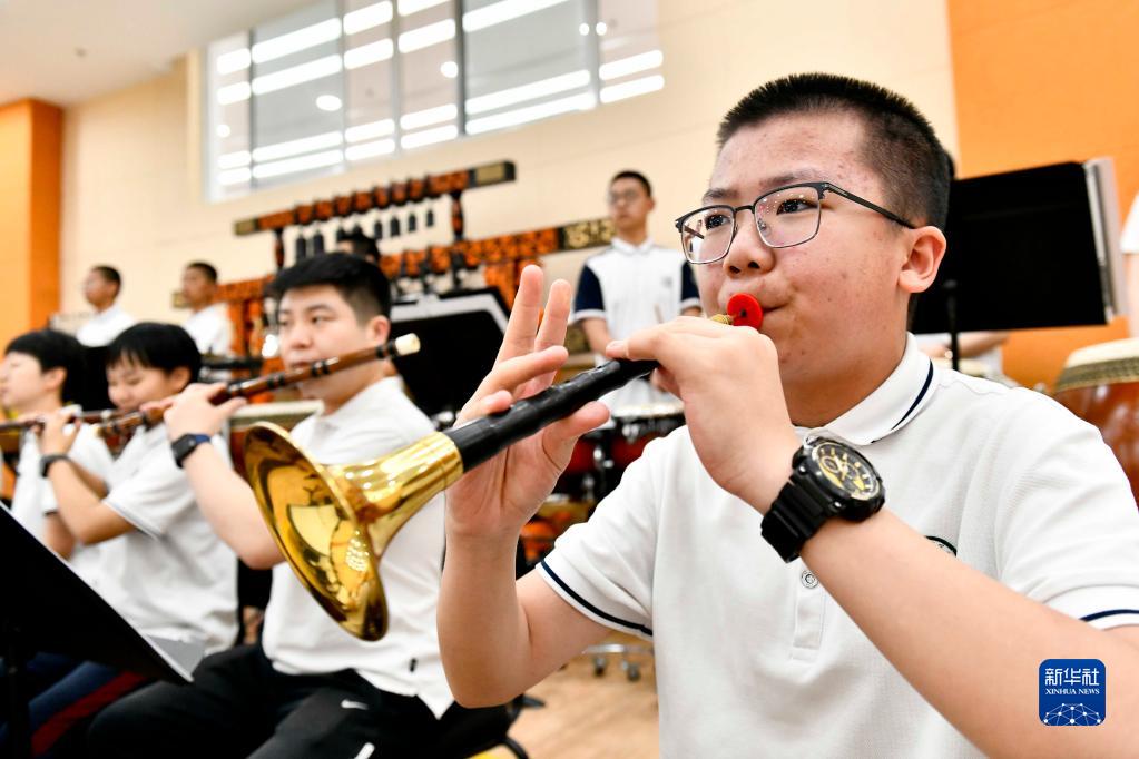 5月23日,在濟南市歷城二中聞韶藝術(shù)館,同學(xué)們在練習國樂(lè )曲目。
