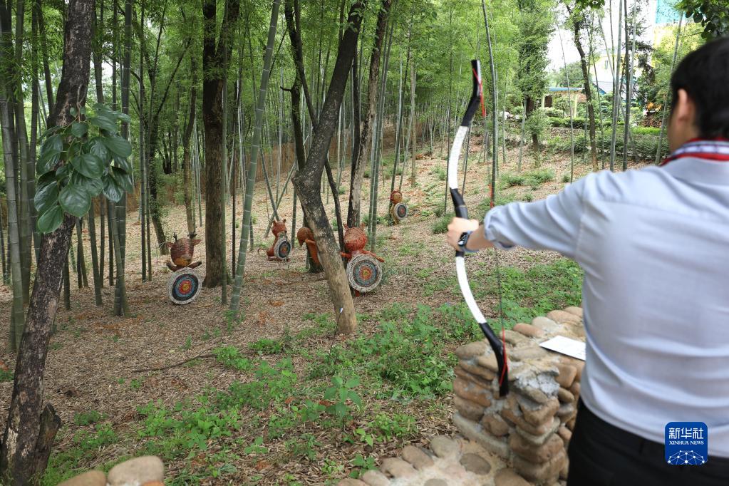 5月24日,在浙江省龍游縣浦山村,游客體驗射箭項目。