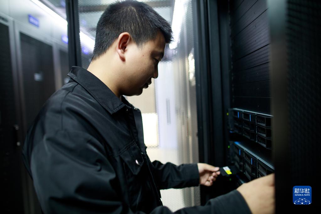 5月23日,工作人員在貴州大學(xué)省部共建公共大數據國家重點(diǎn)實(shí)驗室算力中心機房檢查設備。