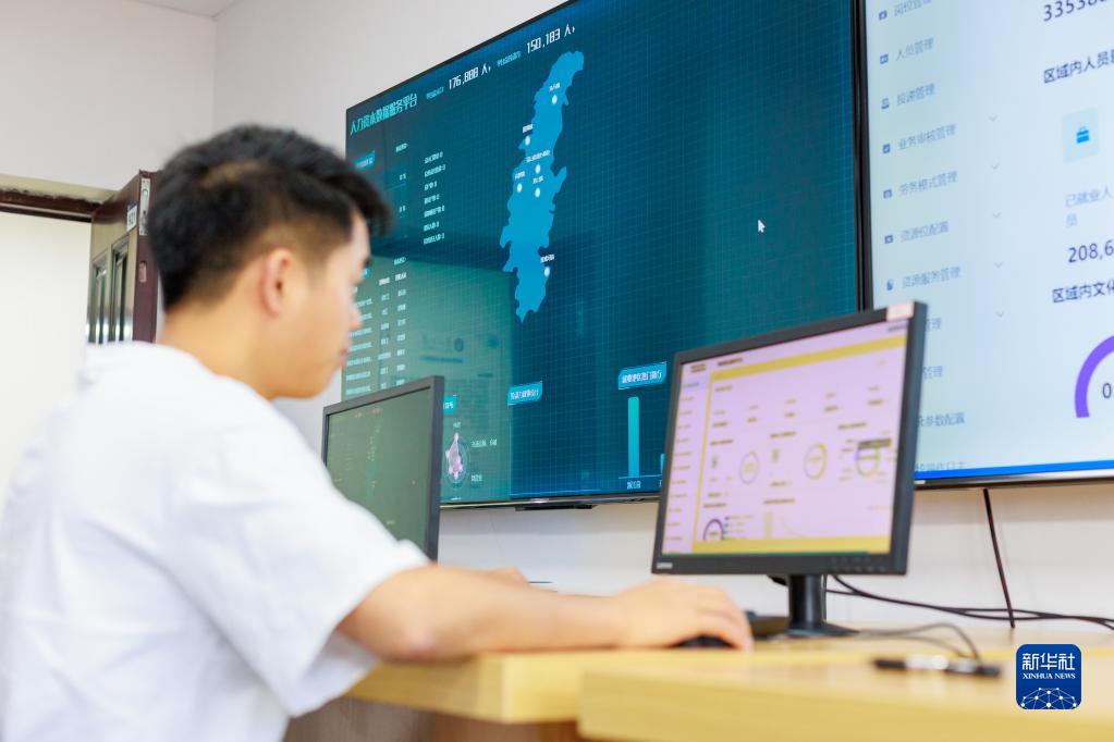 5月23日,工作人員在貴州大學(xué)省部共建公共大數據國家重點(diǎn)實(shí)驗室的智能就業(yè)服務(wù)平臺上工作。