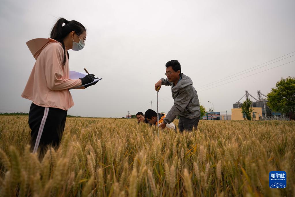 5月25日,在河北滄州渤海新區黃驊市中捷產(chǎn)業(yè)園區農科所旱堿麥繁種試驗田里,技術(shù)人員對小麥進(jìn)行測產(chǎn)。