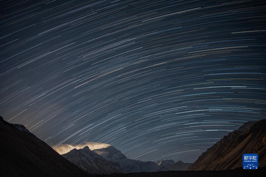 這是5月10日凌晨在珠峰大本營(yíng)拍攝的星軌(合成照片)。