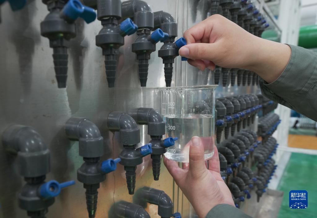 5月25日,工人在唐山市海港經(jīng)濟開(kāi)發(fā)區海水淡化項目投產(chǎn)的淡水生產(chǎn)車(chē)間提取水樣。