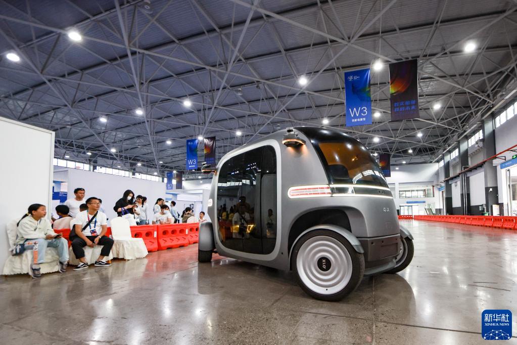 5月26日,參觀(guān)者在數博會(huì )現場(chǎng)體驗Robobus(無(wú)人駕駛小巴)。