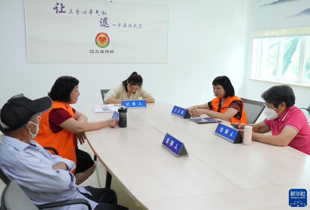 5月26日,在諸暨市暨陽(yáng)街道江新社區“江大姐”調解室,兩名調解員在為群眾進(jìn)行調解。該品牌調解工作室主要由女性組成,針對社區特點(diǎn),為周邊居民調解鄰里、家庭矛盾。