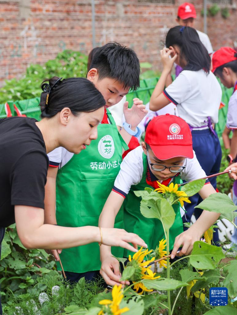 5月26日,學(xué)生在老師帶領(lǐng)下體驗農作物培育實(shí)踐活動(dòng)。