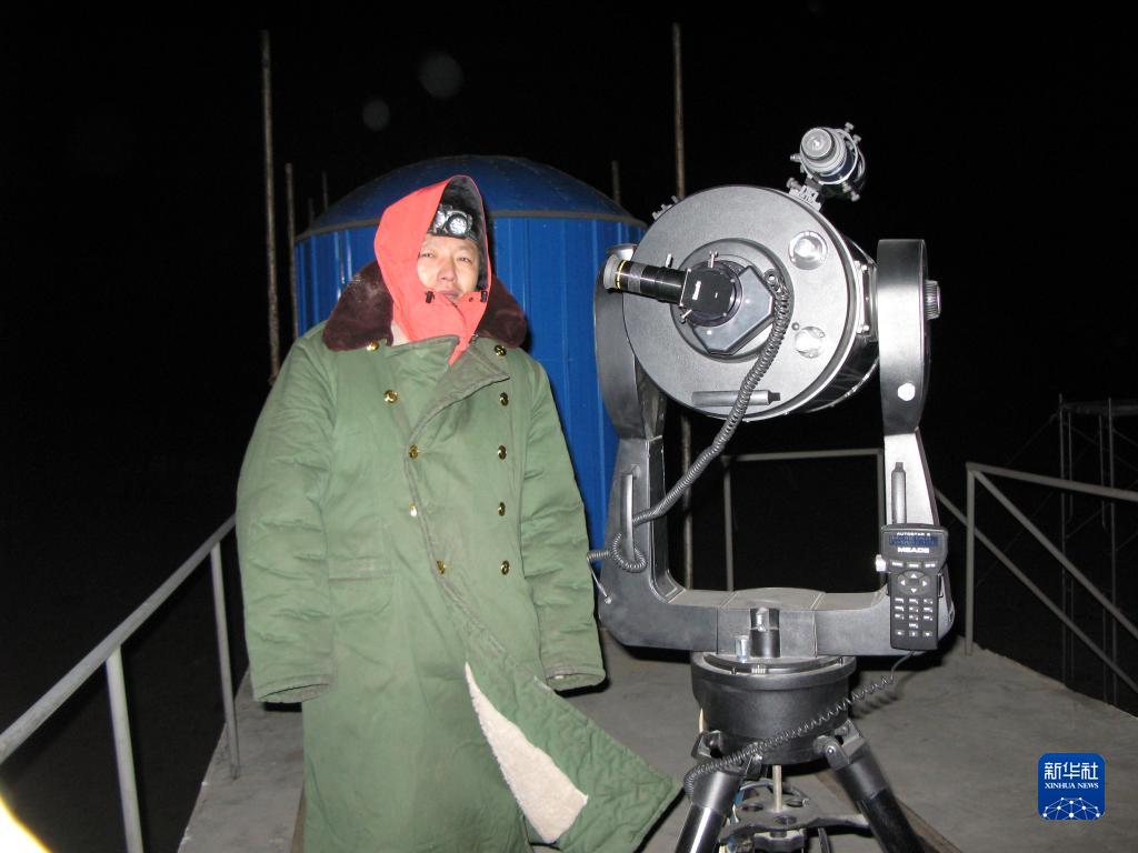 尤顯龍在物瑪站進(jìn)行夜間望遠鏡實(shí)驗(2010年12月攝)。