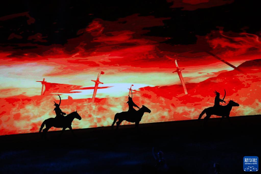 當日,由內蒙古民族藝術(shù)劇院出品的2023年大型馬舞劇《千古馬頌》在呼和浩特上演。該劇以馬術(shù)表演為主,綜合運用了舞蹈、器樂(lè )、雜技等藝術(shù)元素,融合了現代高科技舞臺技術(shù),以全新藝術(shù)形式生動(dòng)演繹了人與馬相遇、相識、相伴、不離不棄、生死與共的情感歷程,體現了人、馬與自然和諧共存的精神。