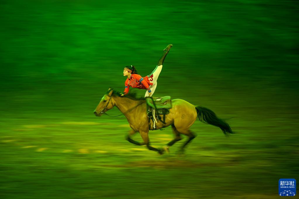 當日,由內蒙古民族藝術(shù)劇院出品的2023年大型馬舞劇《千古馬頌》在呼和浩特上演。該劇以馬術(shù)表演為主,綜合運用了舞蹈、器樂(lè )、雜技等藝術(shù)元素,融合了現代高科技舞臺技術(shù),以全新藝術(shù)形式生動(dòng)演繹了人與馬相遇、相識、相伴、不離不棄、生死與共的情感歷程,體現了人、馬與自然和諧共存的精神。