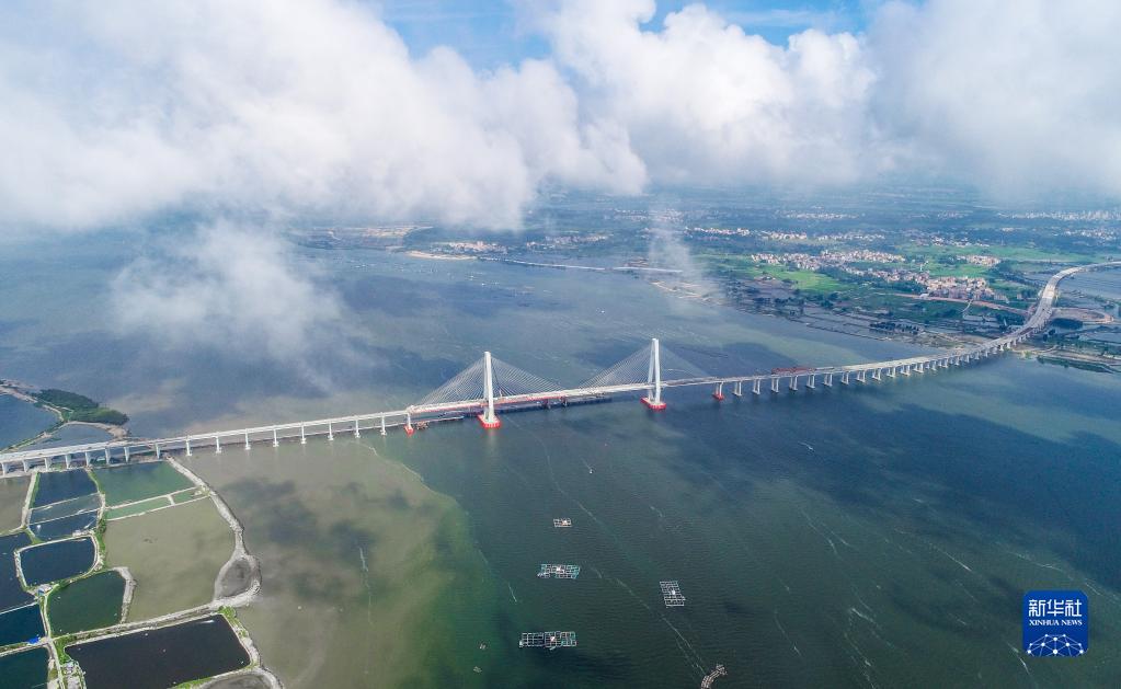 鷺洲大橋猶如長(cháng)龍臥波,橫跨南三島海域(5月25日攝,無(wú)人機照片)。