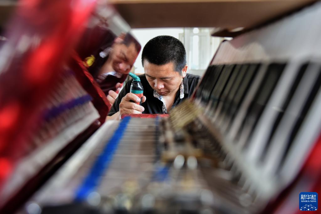 5月25日,在天津鸚鵡樂(lè )器有限公司,工人在生產(chǎn)鍵盤(pán)式手風(fēng)琴。