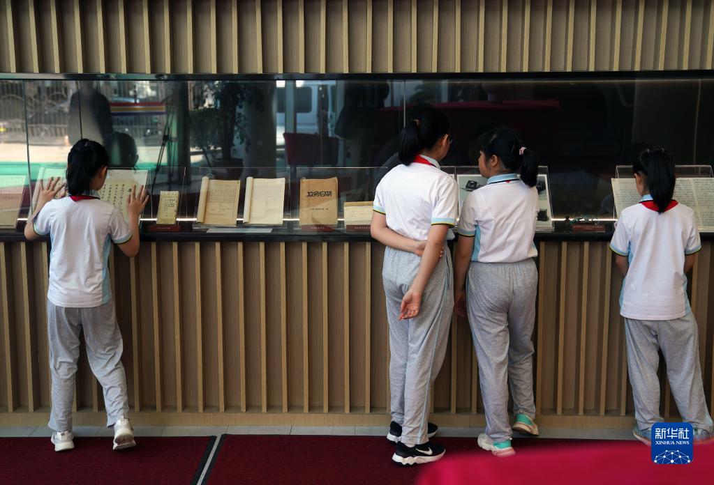 5月25日,徐匯區第一中心小學(xué)的學(xué)生在校史陳列廳參觀(guān)學(xué)習校史。