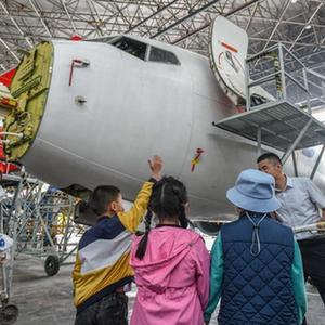 5月27日,孩子們在山東太古飛機工程有限公司參觀(guān)。