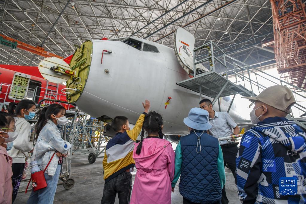 5月27日,孩子們在山東太古飛機工程有限公司參觀(guān)。