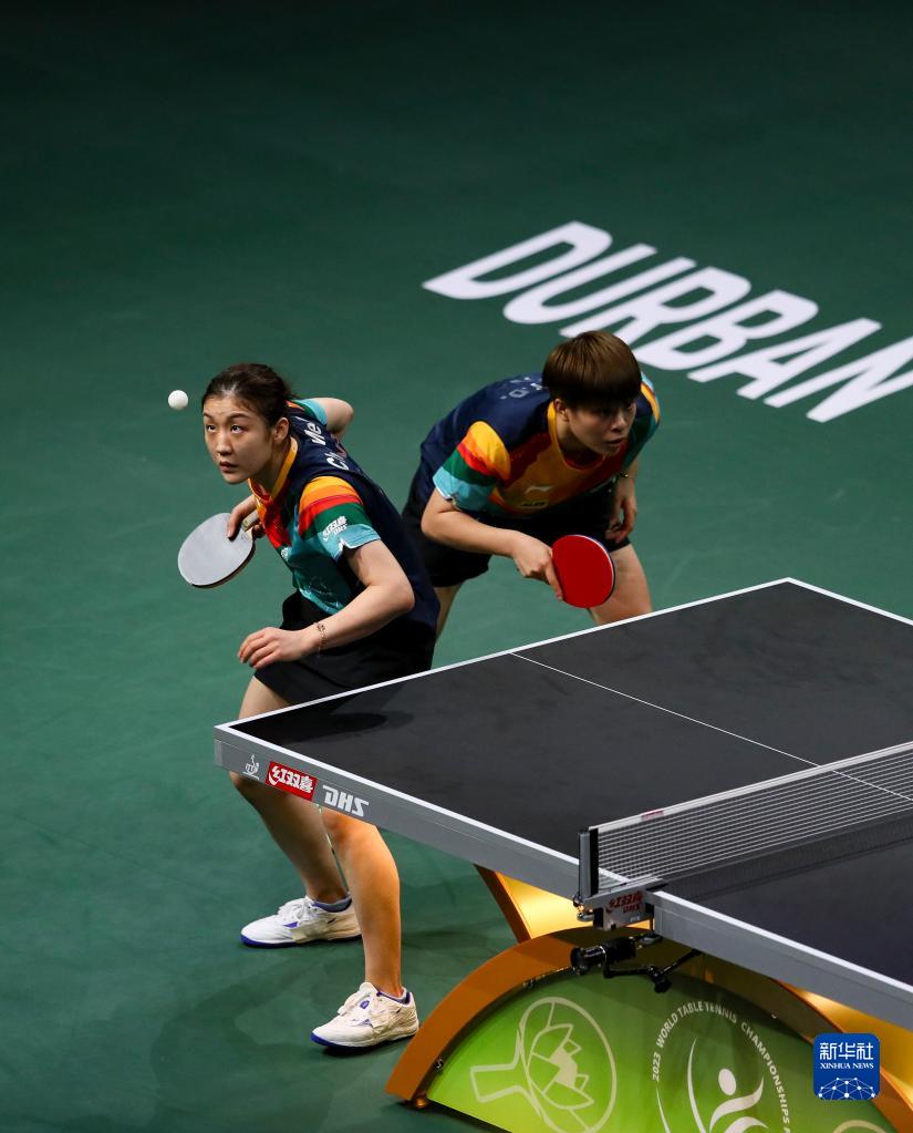 當日,在南非德班進(jìn)行的2023年世界乒乓球錦標賽女子雙打決賽中,中國選手陳夢(mèng)/王藝迪以3比0戰勝韓國選手田志希/申裕斌,奪得冠軍。