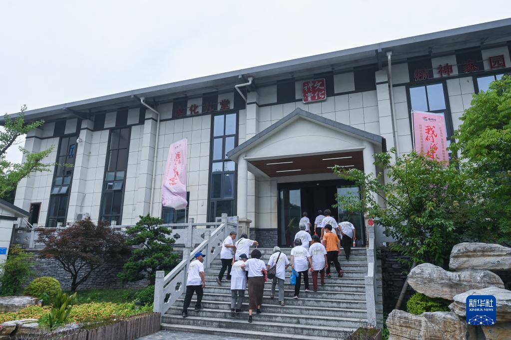 5月27日,梅坪村的村民進(jìn)入新建成的文化中心內的村文化禮堂,參加百家宴并觀(guān)看文藝演出。