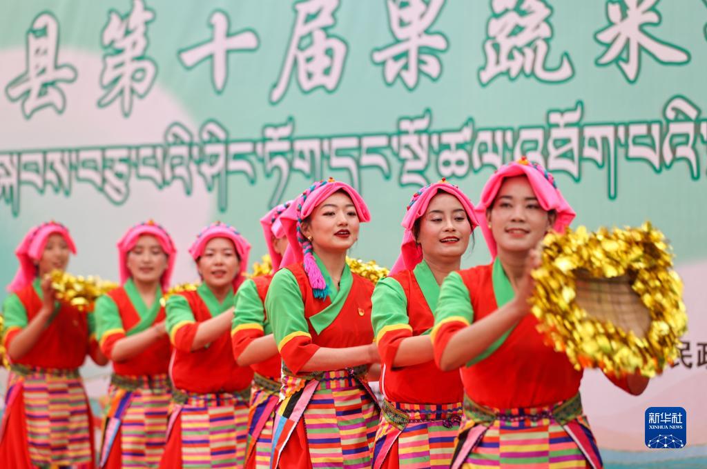 5月28日,居民在第十屆白朗果蔬采摘節上表演節目。