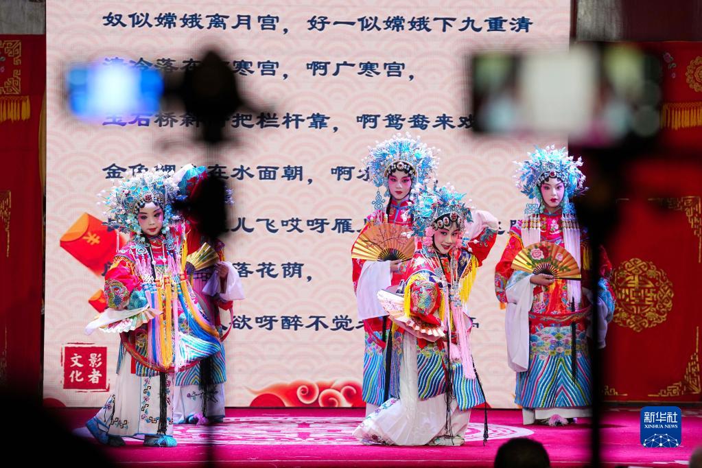 5月28日,小朋友們在表演京劇選段《貴妃醉酒》。