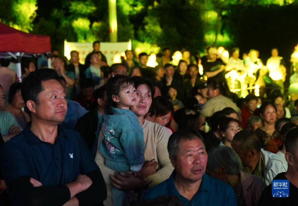 5月28日,淮安市漣水縣保灘街道肖渡村村民在觀(guān)看表演。