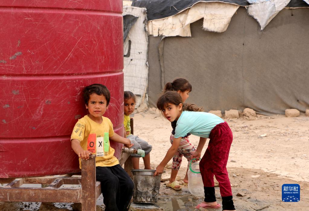 這是5月28日在敘利亞哈塞克省拍攝的霍爾難民營(yíng)內的孩子們。