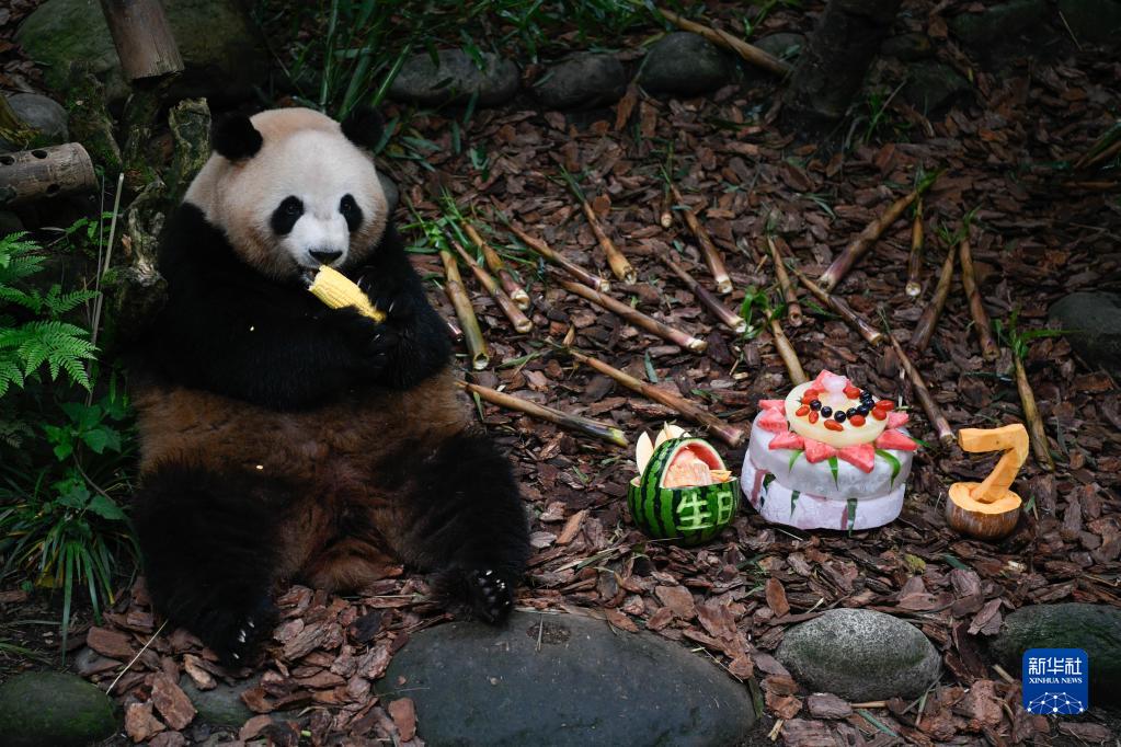當日是大熊貓梅蘭的7歲生日,成都大熊貓繁育研究基地都江堰野放繁育研究中心為它準備了生日大餐。