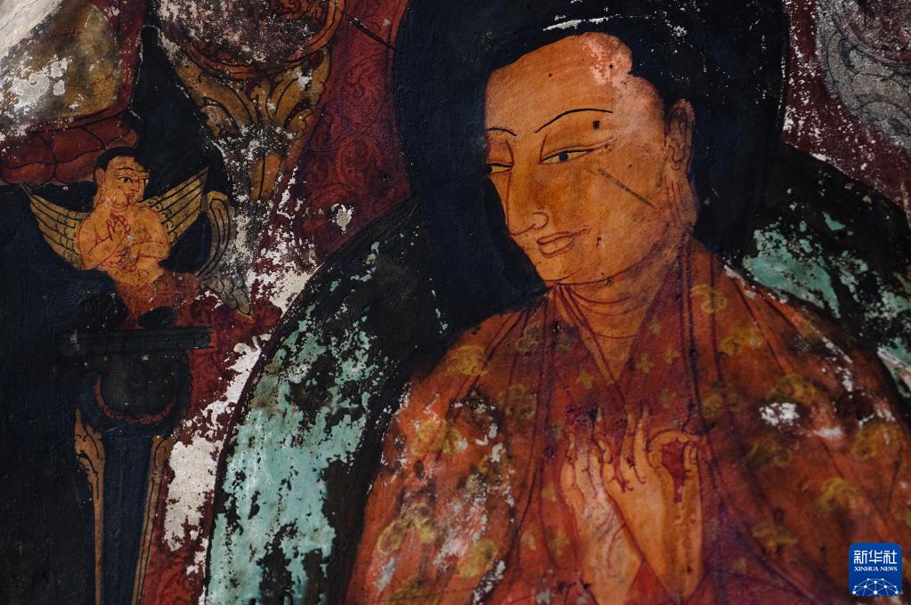 這是5月26日拍攝的皮央石窟壁畫(huà)中的人物造型。