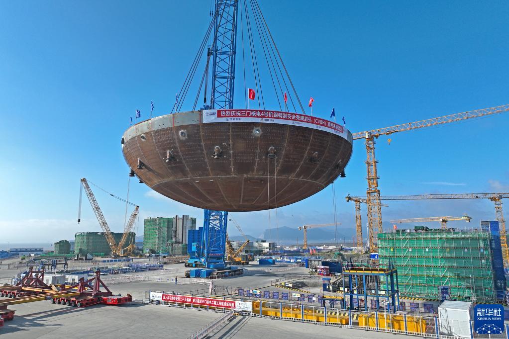 浙江三門(mén)核電二期工程4號機組核島鋼制安全殼底封頭吊裝就位