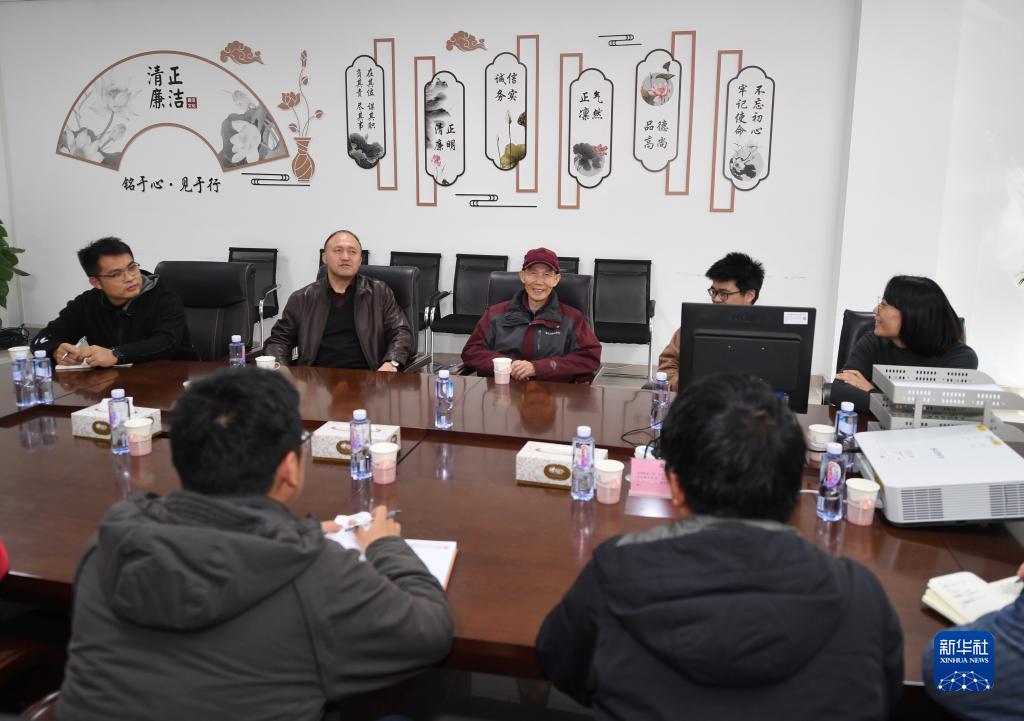 3月3日,在龍鱗系統生產(chǎn)基地,魏昌武(中)、劉艷陽(yáng)(左二)在與青年科研人員交流。
