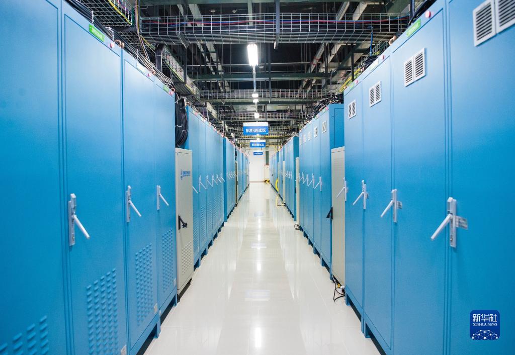 這是5月26日拍攝的龍鱗系統生產(chǎn)基地內擺放的機柜。