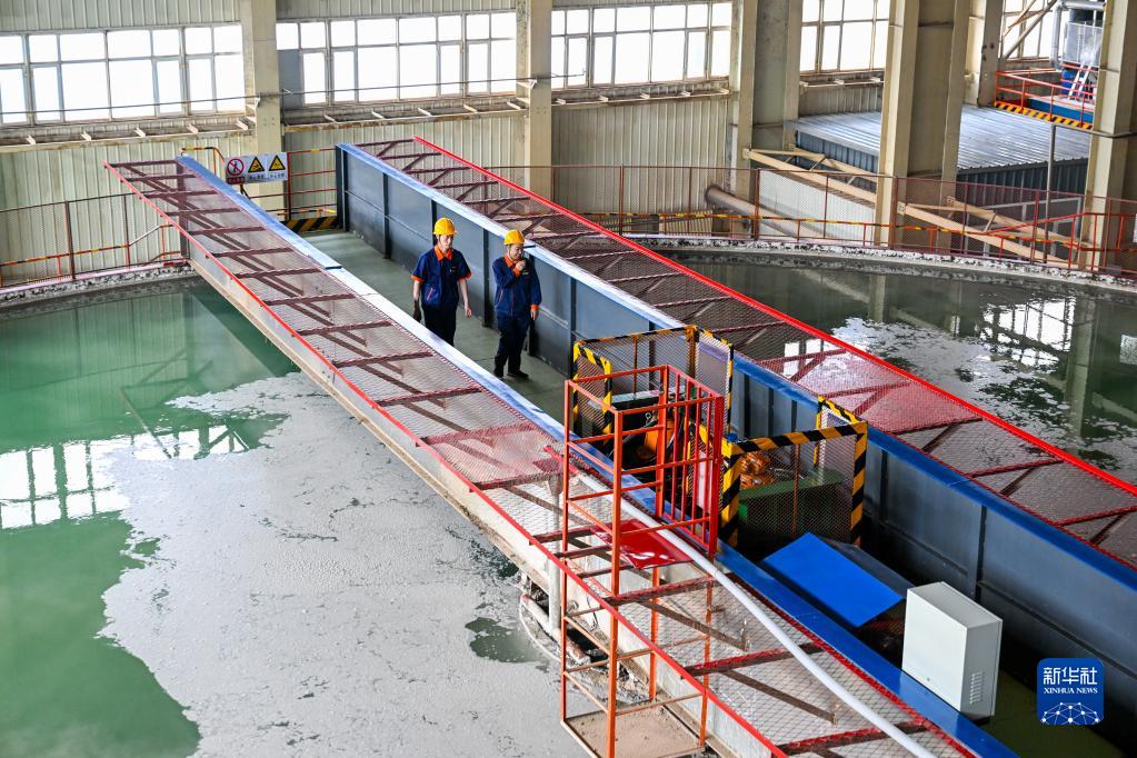 5月30日,工作人員在蘇尼特金曦黃金礦業(yè)有限責任公司的生產(chǎn)車(chē)間內檢查設備運行情況。