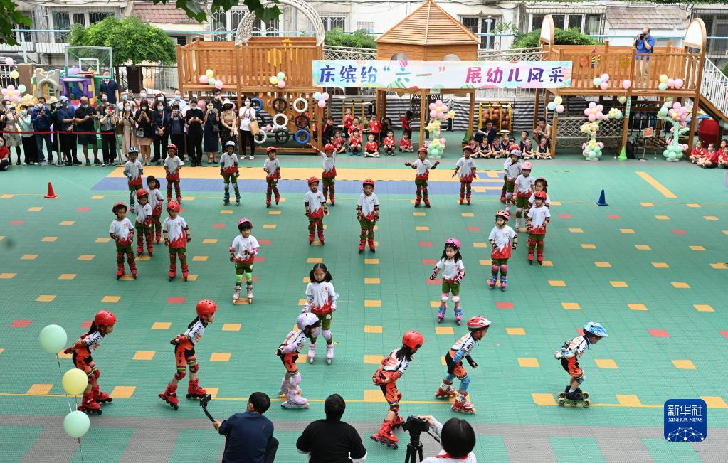 5月31日,在北京市東城區欣苑幼兒園舉行的“慶繽紛‘六一’ 展幼兒風(fēng)采”活動(dòng)上,小朋友表演輪滑。