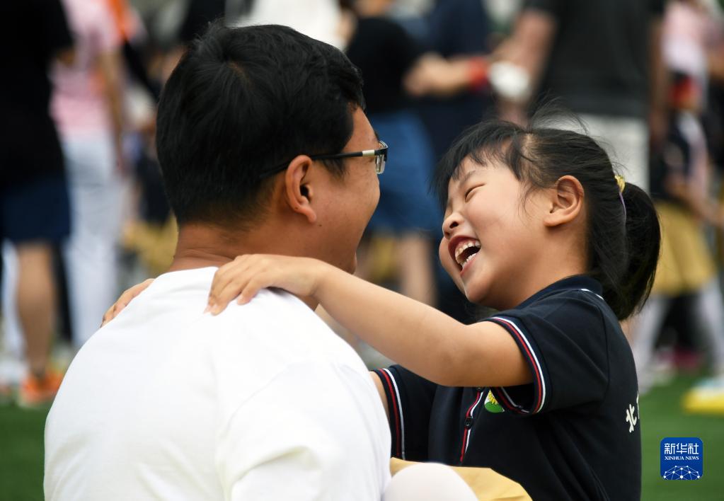 5月31日,在北京大學(xué)醫學(xué)部幼兒園2023年慶“六一”親子運動(dòng)會(huì )現場(chǎng),小朋友和家長(cháng)參與親子游戲。