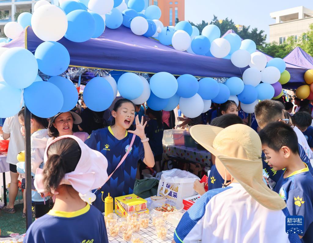 5月31日,在廣西南寧市濱湖路小學(xué),學(xué)生在參與“紅領(lǐng)巾公益市集”義賣(mài)活動(dòng)。