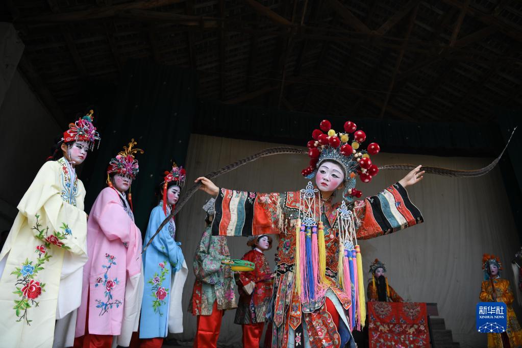 安徽省宣城市績(jì)溪縣伏嶺村是一座歷史悠久的傳統村落,當地徽劇傳承已有近200年歷史。為了引導青少年傳承中華優(yōu)秀傳統文化,坐落在伏嶺村的伏嶺鎮中心小學(xué)從2003年起開(kāi)設“徽劇童子班”,聘請當地民間老藝人指導小學(xué)生定期開(kāi)展徽劇教學(xué)和展演活動(dòng),培養了一批又一批徽劇“新苗”。
