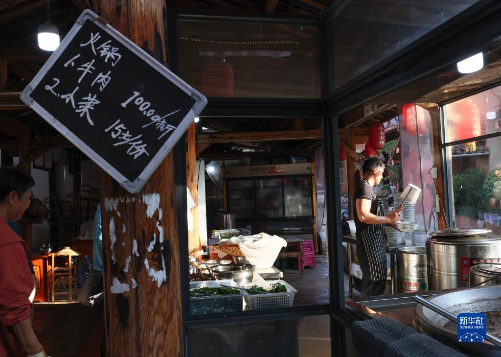 5月31日,普者黑景區仙人洞村一家餐館的工作人員在準備早餐。