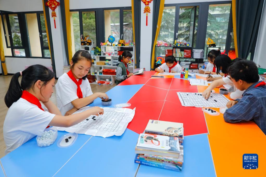 孩子們下課后來(lái)到四川巴中市南江縣集州街道楊家河社區的“童心港灣”讀書(shū)、學(xué)畫(huà)畫(huà)、下五子棋(5月25日攝)。