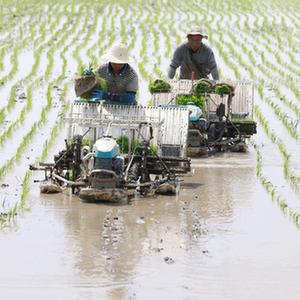 5月31日,河北省唐山市豐南區夏新莊村的農民在田間進(jìn)行插秧作業(yè)。