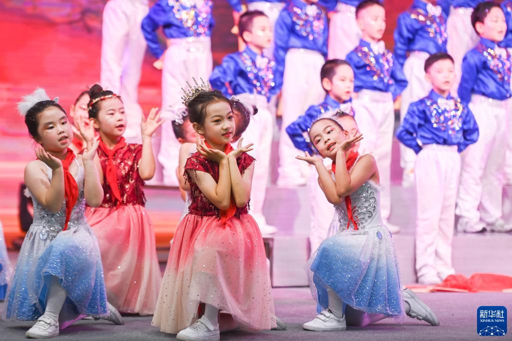 5月31日,杭州市蕭山區湘師實(shí)驗小學(xué)教育集團(南城校區)的學(xué)生表演合唱節目《我和我的祖國》。