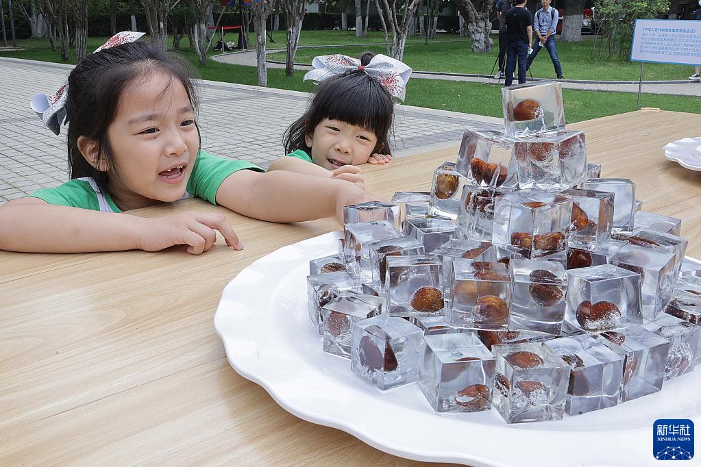 5月31日,小朋友們在活動(dòng)上觀(guān)看藝術(shù)裝置。
