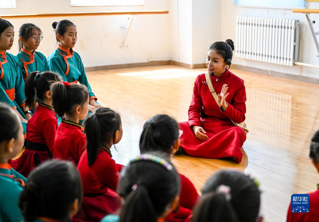 “六一”國際兒童節即將到來(lái),內蒙古錫林郭勒盟蘇尼特右旗烏蘭牧騎隊員走進(jìn)蘇尼特右旗第四小學(xué),與由學(xué)生組成的“小小烏蘭牧騎”一同交流,迎接兒童節的到來(lái)。