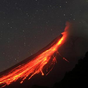 這是6月1日在印度尼西亞日惹拍攝的噴發(fā)中的默拉皮火山。