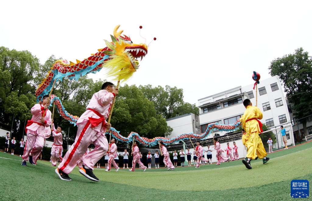 6月1日,江蘇省蘇州市昇平實(shí)驗小學(xué)校學(xué)生在表演舞龍。