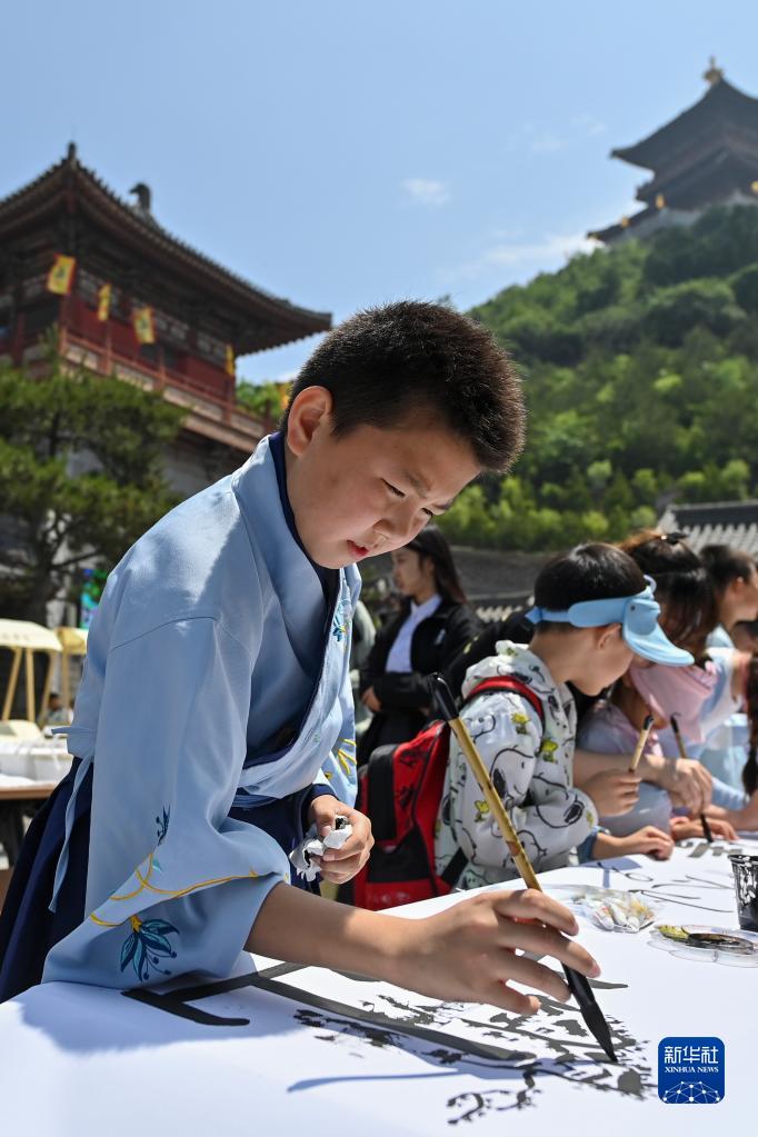 6月1日,小朋友在山西太原太山景區舉辦的兒童書(shū)畫(huà)、詩(shī)詞誦讀活動(dòng)中畫(huà)畫(huà)。