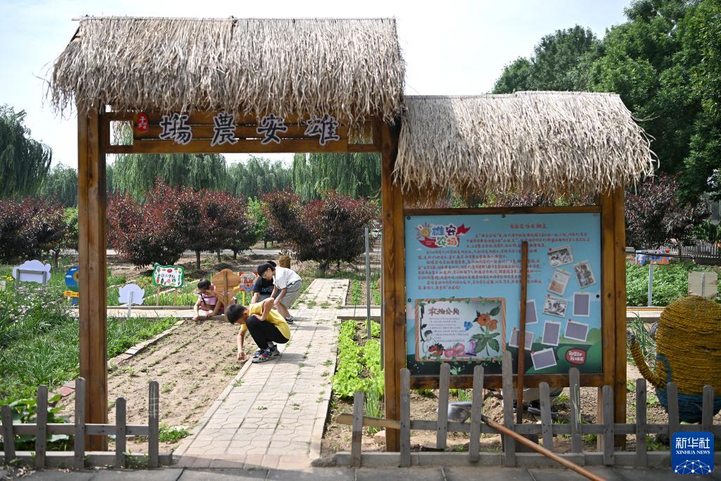 5月31日,中關(guān)村第三小學(xué)雄安校區的學(xué)生在學(xué)校設立的“雄安農場(chǎng)”里手工除草?!靶郯厕r場(chǎng)”里每個(gè)班級都有自己的一塊土地,學(xué)校通過(guò)農場(chǎng)勞動(dòng)課,讓同學(xué)們從科學(xué)走向生活,從知識走向能力。